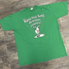 Vintage Christmas Rudolph Wanna Play Reindeer Games Tshirt OSFA USA Made (67)