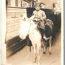 c1910s Cute Little Boy Ride Donkey RPPC Bonita Child Happy Kid Smile Kennes A191