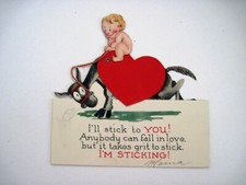 Vintage Antique Mechanical Valentine w/ Cute Little Boy Riding A Bucking Bronco*