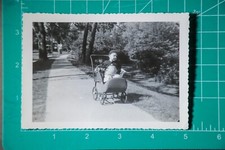 1940s Boy Pushing Around Cute Little Girl on Riding Toy Stroller Real Photo P8a