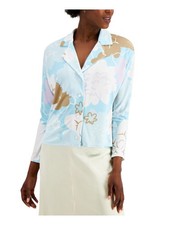 Talbots Light Blue Merino Wool Notched Collar Button Up Sweater Jacket Blazer L