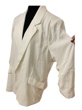 Skies Are Blue Blazer Women’s 1X Lined Beige Notched Collar Ruched Recycled