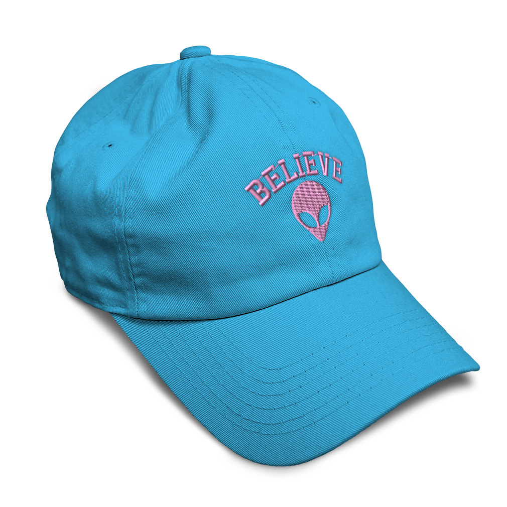 Soft Women Baseball Cap Pink Alien Believe Embroidery Dad Hats for Men