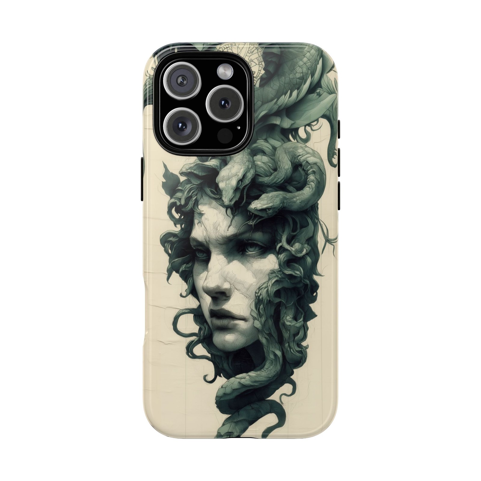 Phone Ink - Case for iPhone/Galaxy/Pixel - Dark Green Medusa Snakes