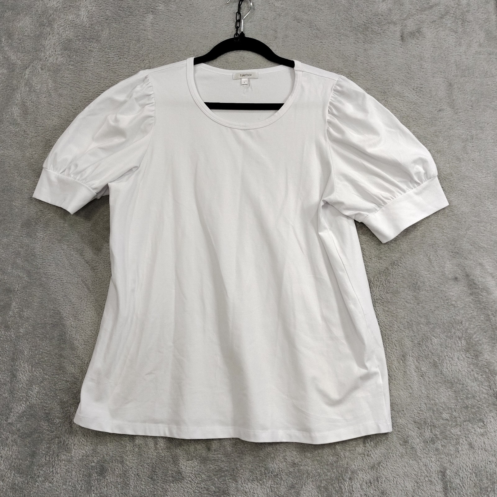 Tyler Boe Top Women's Size L Kari Puff Sleeve White Clean Girl Cotton Stretch