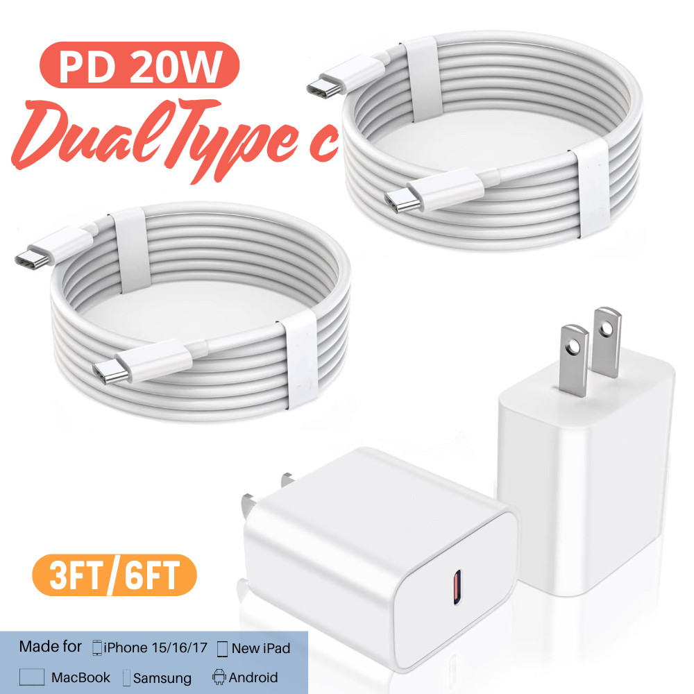 2x For iPhone Air 17 16 15 iPad PD 20W Block Cable Type C To USB C Fast Charger
