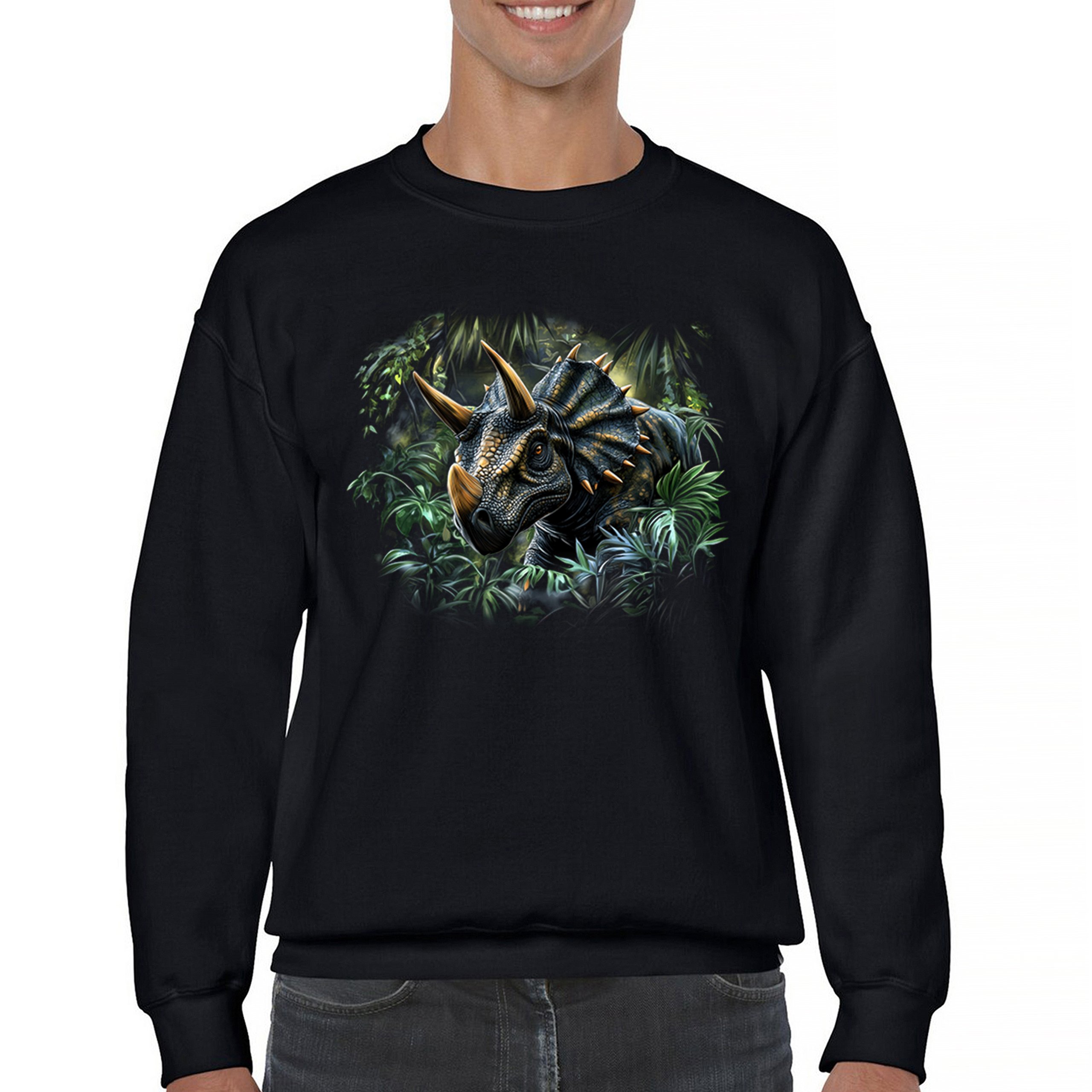 Triceratops Jungle Sweatshirt Dinosaur Dino Jurassic Era Prehistoric Crewneck