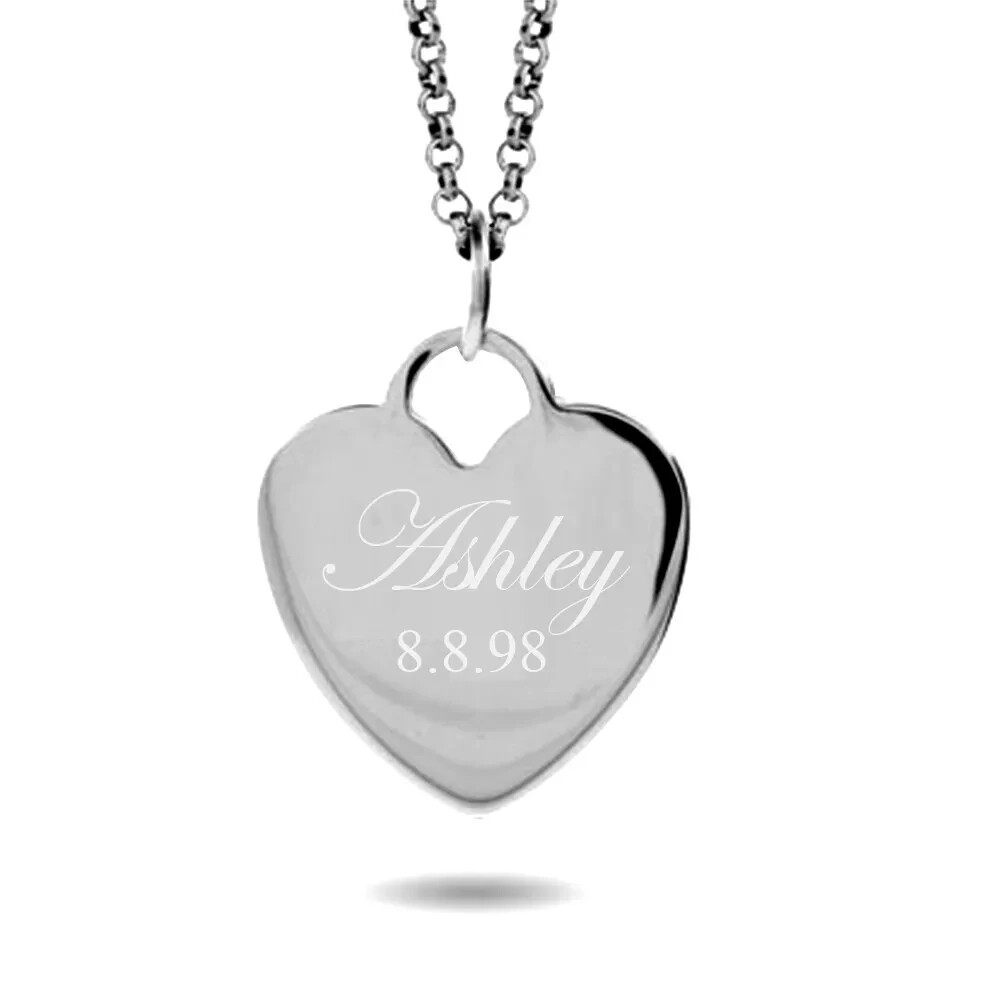 Custom Heart Name Necklace – Personalized Engraved Pendant Gold Silver Gift