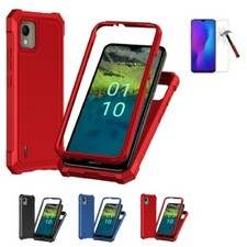 For Nokia C110 Phone Case Armor Ring Magnetic Support Stand Cover+Tempered Glass
