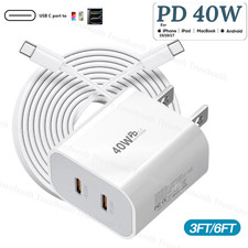 For iPhone 17 16 15 14 13 12 11 USB C 40W Fast Charger Cube PD Type C Cable Lot