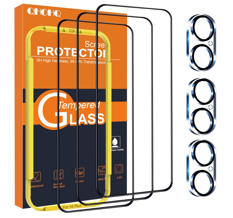 The QHOHQ product is a set of 3 tempered glass screen and lens protectors designed specifically for the iPhone 16 Plus with a 6.7-inch display. Made by the brand iPhone and manufactured in China, these clear transparent protectors offer 9H hardness for maximum durability. The bubble-free design ensures a smooth and hassle-free installation, providing comprehensive protection for both the screen and lens of the iPhone 16 Plus.
