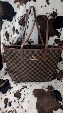 NEW BROWN CHECKERED BAG & CARD HOLDER SET LEOPARD STRAP