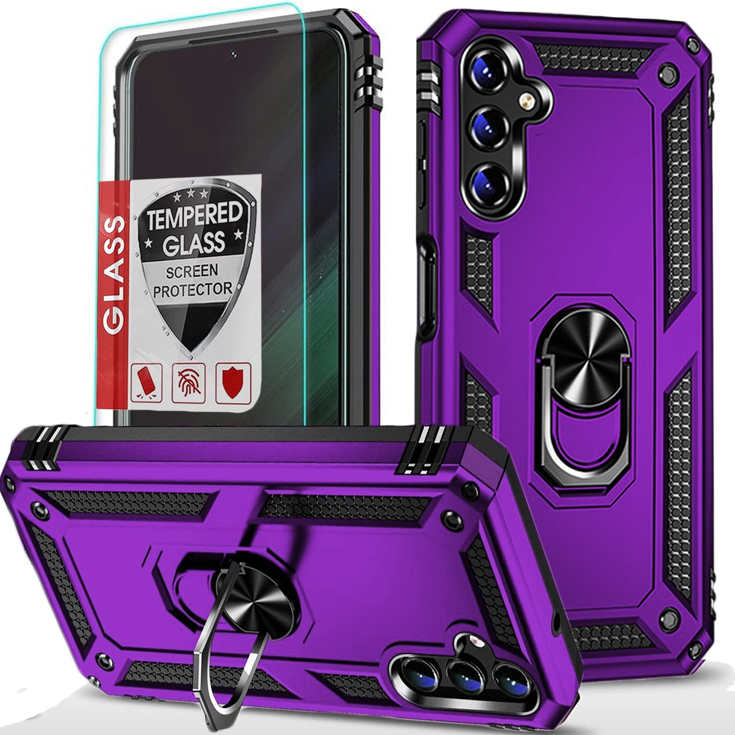 SAMSUNG GALAXY A17 5G. RING KICKSTAND : Case with build in kickstand for better view experience, kickstand also compatible with car mount holder. MATERIAL : Dual layers of shockproof TPU and solid PC for double protection.