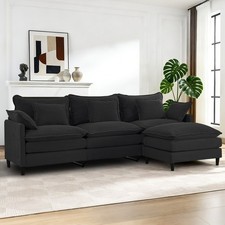 3-seater L-shaped Modular Sofa Black Corduroy Right Chaise Lounge Chair Couch