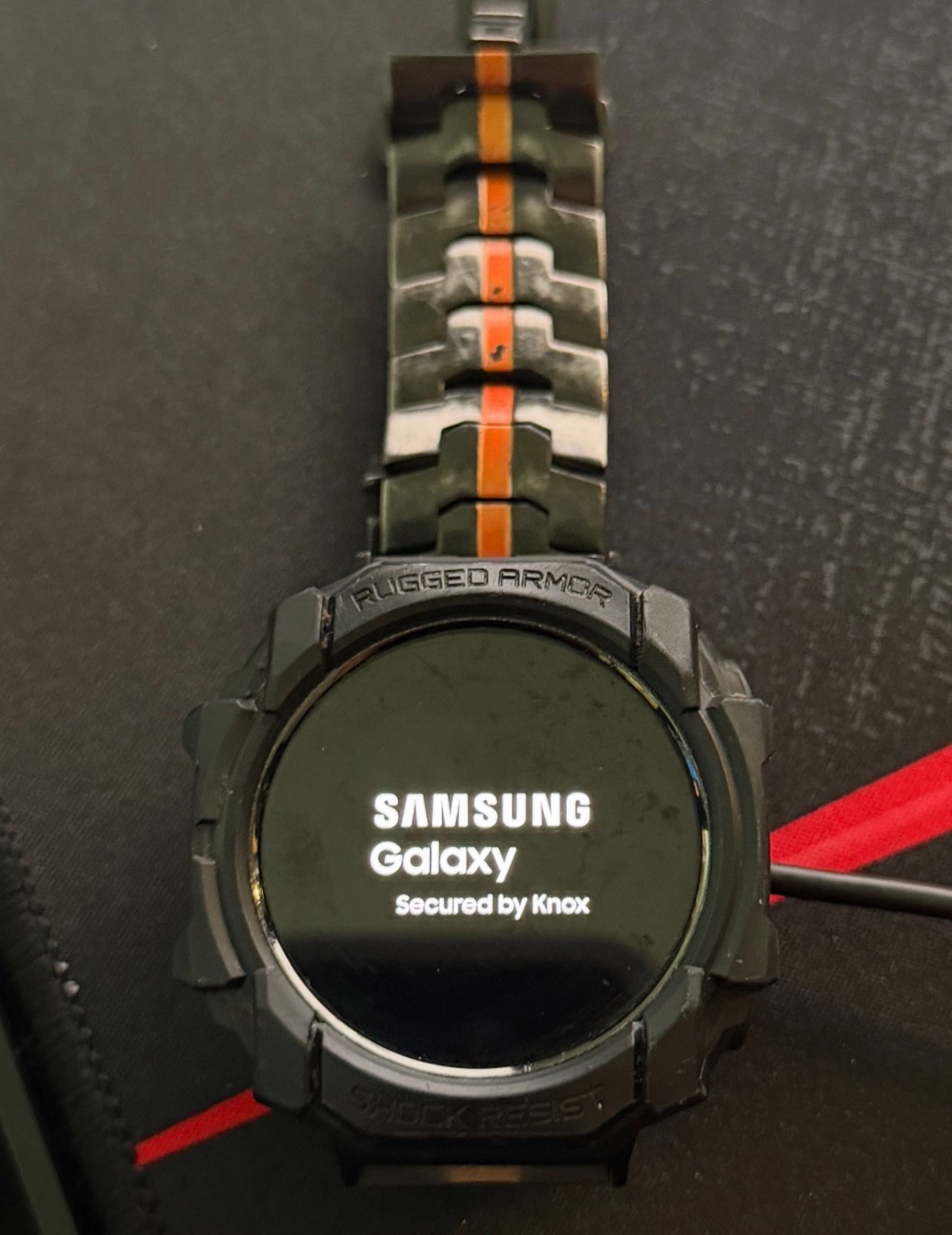 Used watch. wore as a diesel mechanic, but still fully functional with minimal signs of wear. band has some ware on it, but still funtional. has black band with orange accents