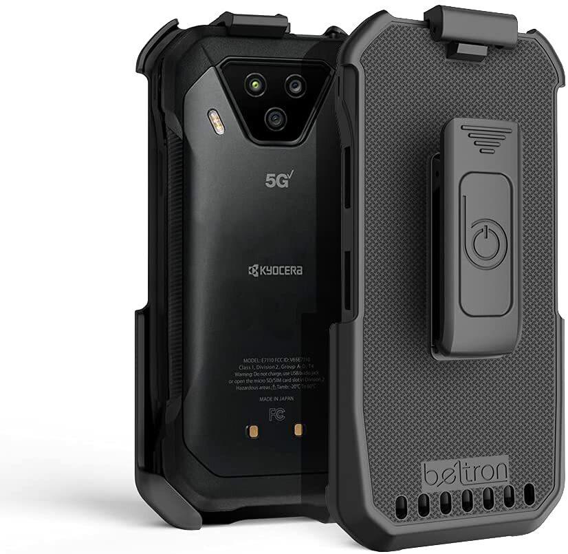 BELTRON 's heavy duty industrial holster is custom designed to support the entire handset while front-facing into the holster. The rugged holster securely holds theKyocera DuraForce Ultra 5G UW (Verizon Wireless ) handset, which may be easily released via the quick-release latch.