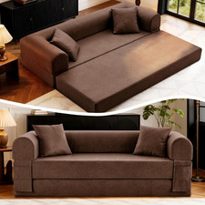 【Sturdy Construction, Solid Materials】Founded atop metal legs in chrome finish, this convertible sofa bed features an engineered wood frame, foam fill, and soft faux leather upholstery that’s easy to clean. Maximum weight capacity up to 772 lb. 【Convertible With 3 Back Positions】This 3-seater futon couch features a click-clack folding contraption to lock the backrest at 105° for comfy sitting, or 140° for lounging, or even lay the back down flat to create a 62.5″ W × 37″ D platform bed for two adults. 【Foldable Centre Drink Holders】In the central part of the sofa back, a drop-down platform with two cup holders keeps your snacks and drinks within arm’s reach. You can always flip it up to create a flat surface for sitting or napping.