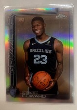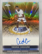 The product is a 2025-26 Topps Chrome Cedric Coward autographed purple refractor trading card numbered out of 75. This basketball trading card features an autograph from Cedric Coward and is a limited edition purple refractor version. As a collectible item in the Sports Mem, Cards & Fan Shop category, this card appeals to fans and collectors of basketball trading cards looking for unique and rare pieces to add to their collection.