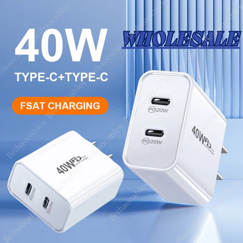 C1+C2: 20W+20W(40W). 1/2/3/5/10/20/30/50/100x 40W Type C Dual PD Wall Plug - White. For iPhone 16/16 Pro/16 Pro Max/16 Plus. For iPhone 15/15 Pro/15 Pro Max/15 Plus. The updated smart iQ chip in the USB-C power adapter protect your iPhone/iPad from.