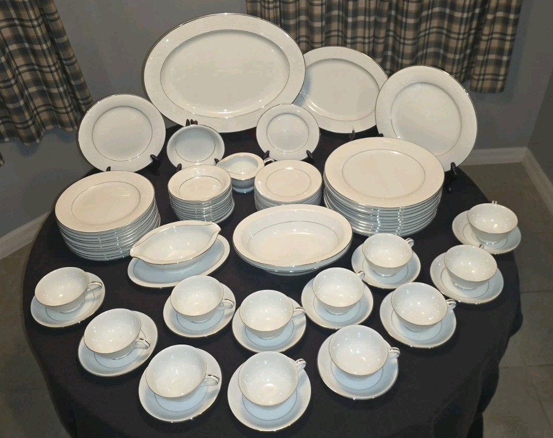 If you like white, lace, and platinum. this set was designed for you! Then each piece has a platinum trim which appear to be in very good condition.