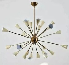 1950s Mid Century Modern Sputnik Chandelier, Brass Globe Pendant Light Fixture