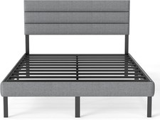 Full/Queen Upholstered Bed Frame with Wing Side Headboard, No Box Spring Needed