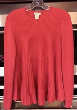 Sundance Top Sweater Wool Cashmere Ribbed Pleated A-line Coral SOFT M