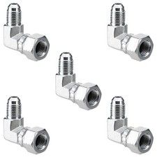5 Pack 90 Degree Elbow Hydraulic Hose Fittings: 3/8" JIC 37° Male X #6 SAE/ORB