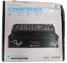 1The Ematic AT103B is a digital converter box that offers a variety of features including recording, playback, and parental control. It supports Dolby Digital electronics and has a 720p video upconversion capability, providing a clear picture output in 1080p Full HD. With multiple audio and video inputs, this TV converter box allows for connectivity through RCA audio, Coaxial Digital, and Component Audio. Additionally, it includes USB and HDMI connections for multimedia playback, making it a versatile and convenient device for enhancing your TV viewing experience.