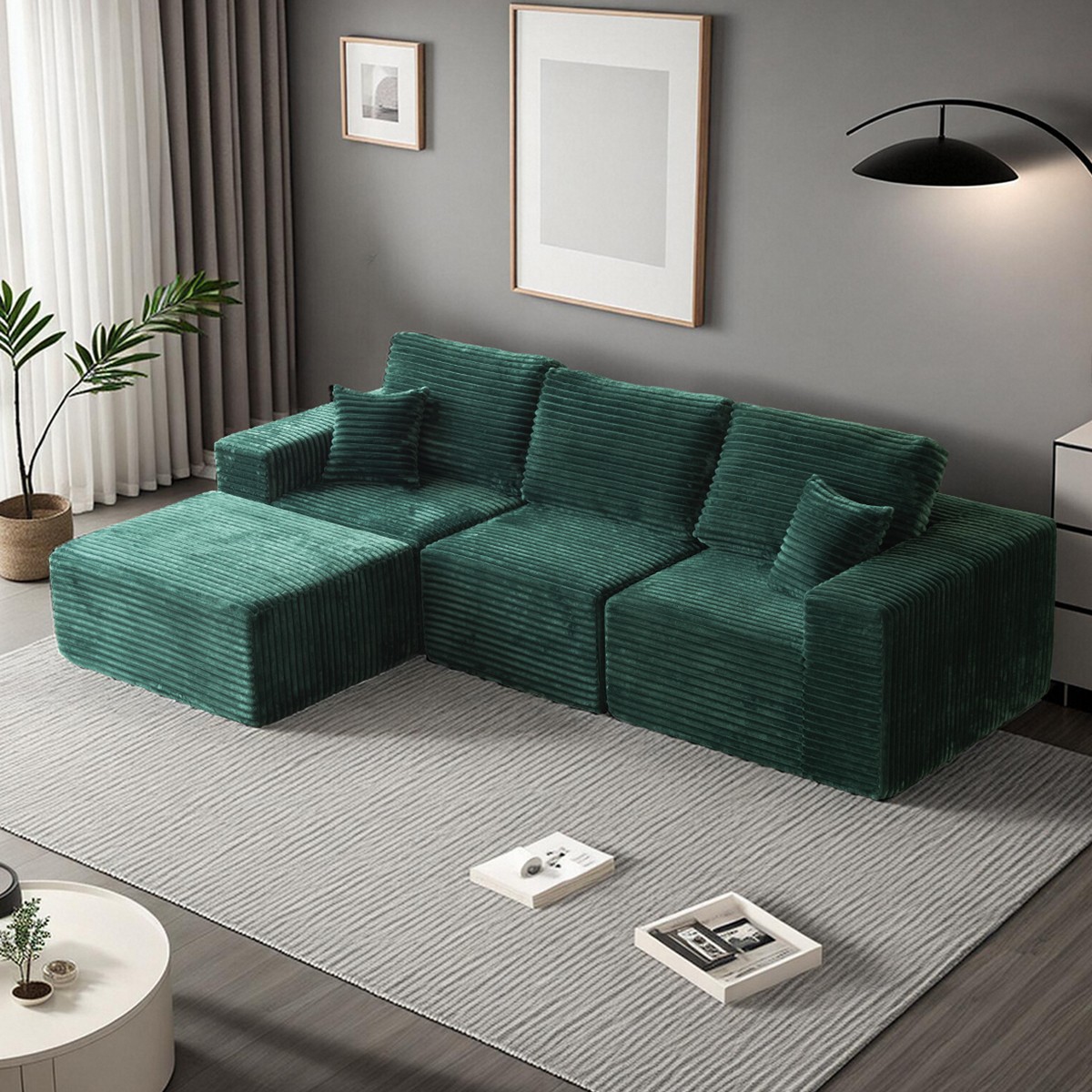 Redefine relaxation with this L shaped sofa, blending cloud sectional couch comfort and plush corduroy fabric. Chaise-Centered Layout: The reversible L shaped couch with chaise lounge adds legroom for stretching or movie nights.