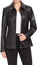 Leather Jacket Women's Black Biker Racer Motorcycle Cafe Party Soft Lambskin