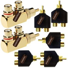 RCA Right Angle Splitter Adapter 2 Pack T Shape 1 Male RCA Plug to Dual Femal...