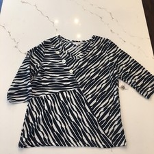 COLOR: ZEBRA. SPLIT FRONT AND BACK PANELS. 3/4 SLEEVE COVER-UP. Bust Waist Hip. APPROXIMATE LENGTH- SHOULDER TO HEM: S-30", M-30", L-30". I am human! The following size chart should only be used as a general guideline!