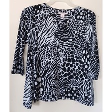 Black/White Zebra 3/4 Sleeve Split Front and Back Panel Shrug Cover-up Top S M