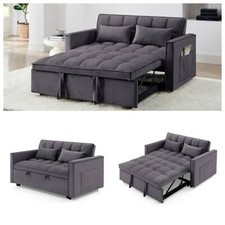 54" 3 n 1 Convertible Sleeper Sofa Bed Pull Out Loveseat Couch Storage Dark Gray